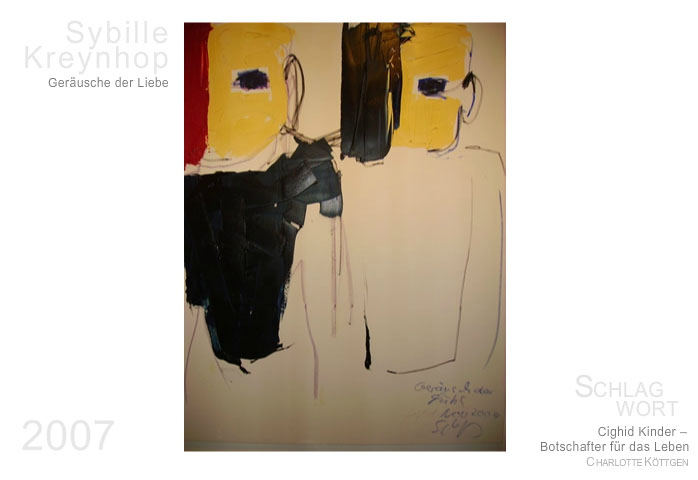Sybille Kreynhop www.kunstschule-kreynhop.de Beschreibung zum Bild unten Titel "Das Zuhören - Du musst auch mal zuhören … Sa. - Gute Gedanken" - 2015 | Bleistift, Feder, Aquarell auf Papier | 70 x 100 cm Beschreibung zum Bild unten Titel "Aufbruch" - 2014 | Öl auf Leinwand | 120 x 150 cm (Bildausschnitt) |